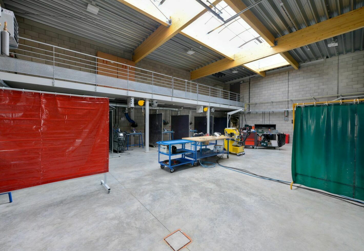 Le bâtiment est habillé de panneaux sandwichs métalliques, identiques à l’enveloppe du bâtiment existant, ce qui permet d’uniformiser l’aspect extérieur des constructions. Ce bardage a été réalisé en coordination avec les menuiseries métalliques extérieures (châssis alu, portes sectionnelles classique et RF60).